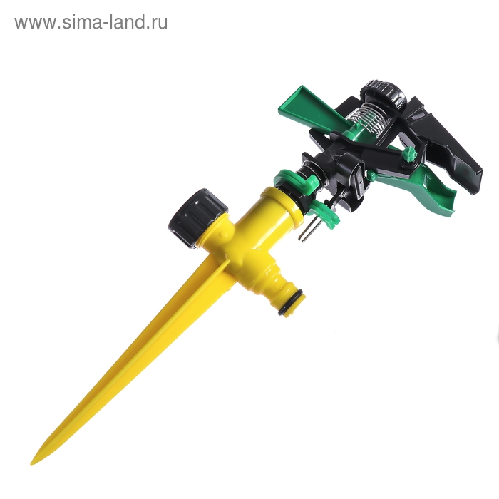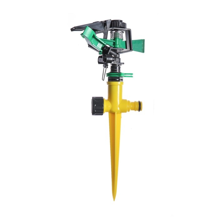 Устанавливается он при помощи штыря непосредственно в почву и предназначен для стационарного полива садов, газонов, загородных участков.