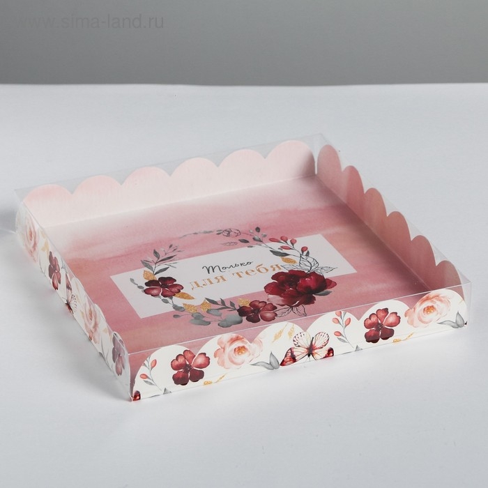 Коробка для печенья, кондитерская упаковка с PVC крышкой, «Только для тебя», 21 х 21 х 3 см