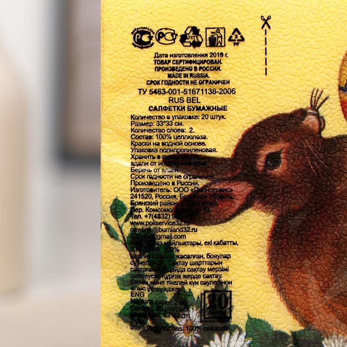 Салфетки бумажные «Светлой Пасхи» белый кролик, 33х33 см, набор 20 шт.