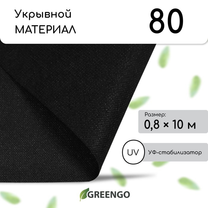 Материал мульчирующий, 10 × 0,8 м, плотность 80 г/м², спанбонд с УФ-стабилизатором, чёрный, Greengo, Эконом 30%