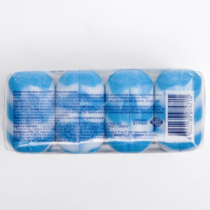 Крем-мыло Exxe 1+1, "Морской жемчуг", синее полосатое, 4 шт. по 90 г