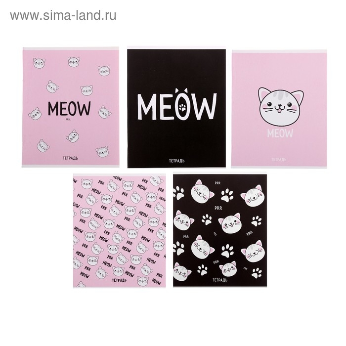 Комплект тетрадей из 5 штук, 48 листов в клетку Calligrata "Meow", обложка мелованный картон, блок офсет