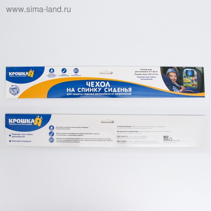 Яркий чехол ТМ «Крошка Я» сохранит в чистоте переднее сиденье автомобиля. Используйте это специальное приспособление, чтобы малыш не запачкал ботиночками спинку кресла.