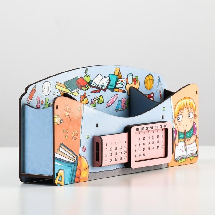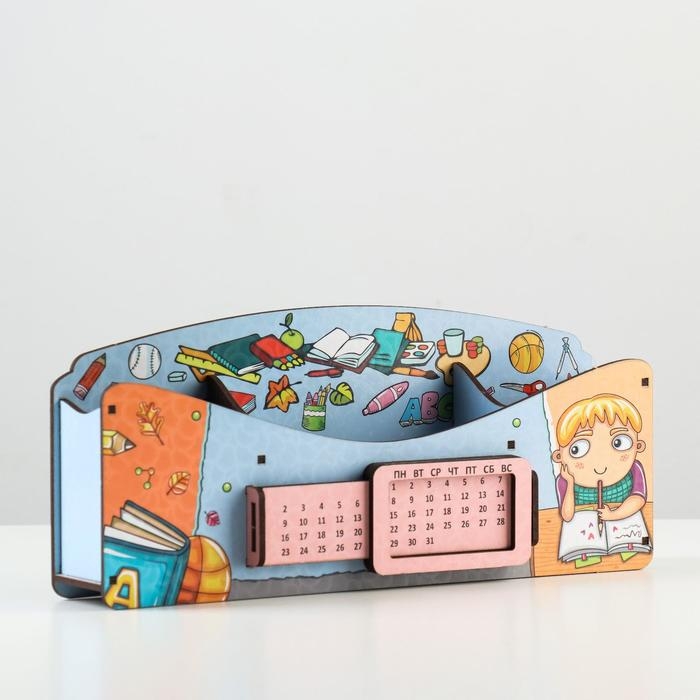 Органайзер для канцелярских предметов "Школа удобств", вечный календарь, цветной, голубой