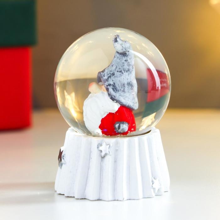 Снежный шар новогодний стеклянный «Дед Мороз в колпаке войлочном», d=4.5 см, 6×4.5×4.5 см