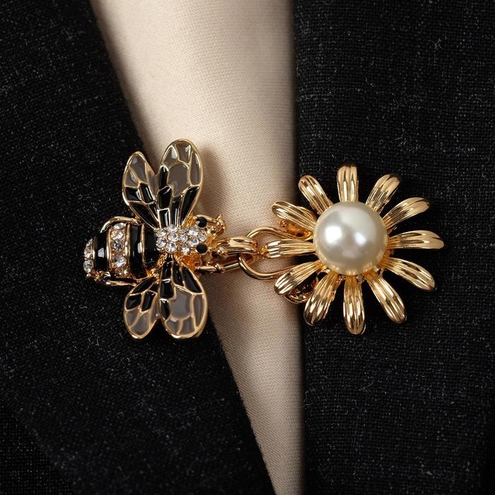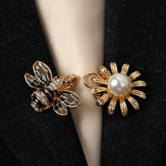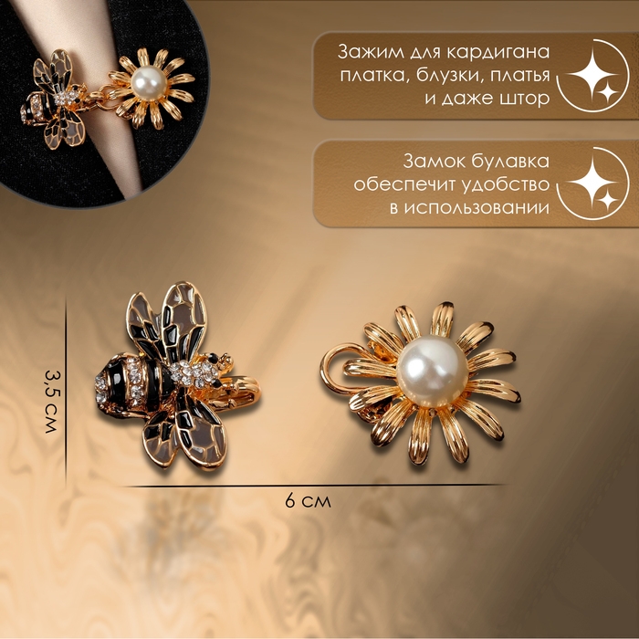 Зажим для кардигана «Пчела», цвет чёрно-белый в золоте