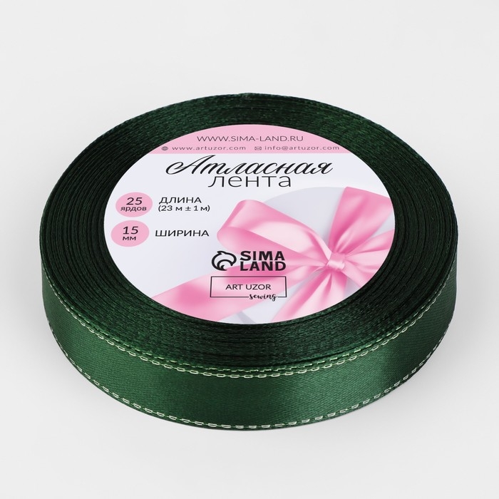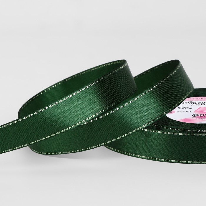 Лента атласная «Серебряные нити», 15 мм × 23 ± 1 м, цвет зелёный №049