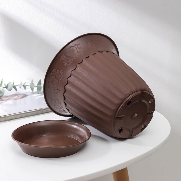 Горшок для цветов с поддоном Доляна, 2 л, цвет поддона микс
