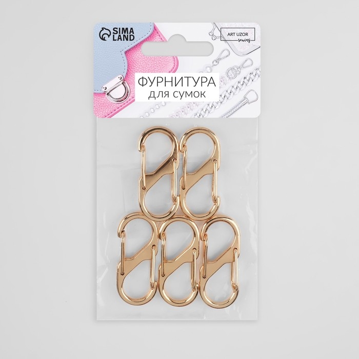 Карабин металлический, двойной, 40 × 18 мм, 5 шт, цвет золотой