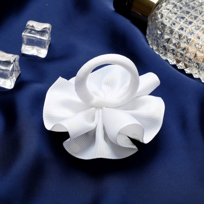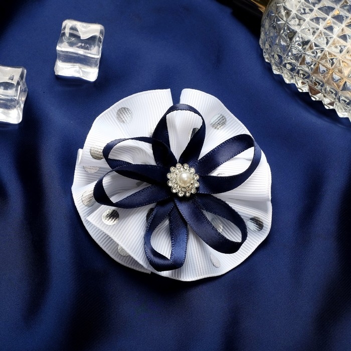Резинка для волос бант "Школьница" горошек и ленточка, d-7 см, сине-белый