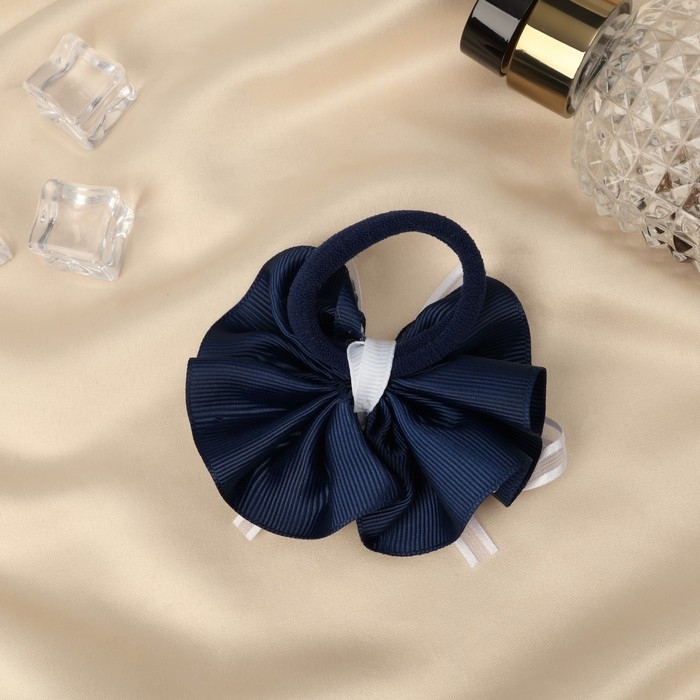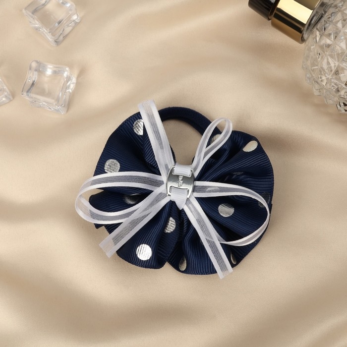 Резинка для волос бант "Школьница" горошек и прозрачная лента, d-7 см, бело-синий