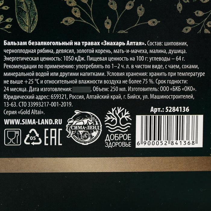 Бальзам – безалкогольный настой на травах горного Алтая. Это полезная добавка к вашему ежедневному рациону.