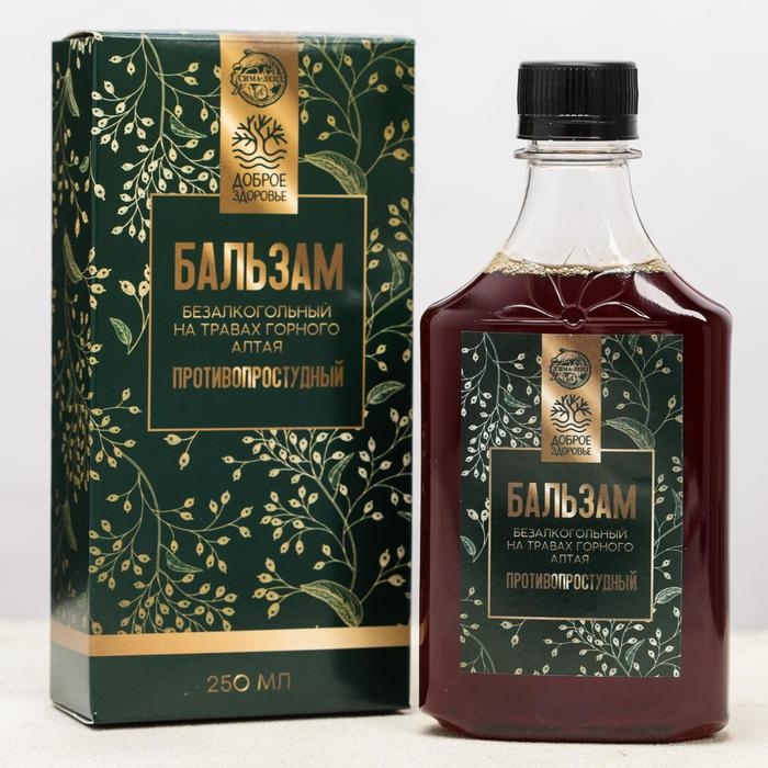 Бальзам безалкогольный на травах «Противопростудный»: рябина, золотой корень, мать-и-мачеха, шиповник,девячил, душица, малина, в пластиковой бутылке, 250 мл