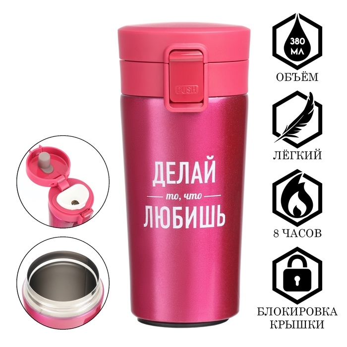 Термокружка, 380 мл, Style "Мастер К. Делай то, что любишь", сохраняет тепло 8 ч, с ситечком