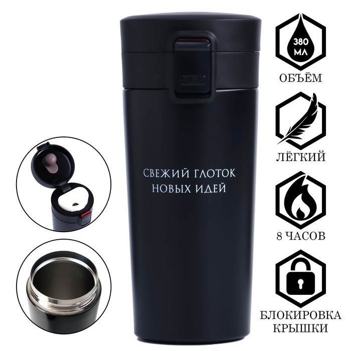 Термокружка, 380 мл, Style "Мастер К. Свежий глоток новых идей", сохраняет тепло 8 ч,с ситеч.