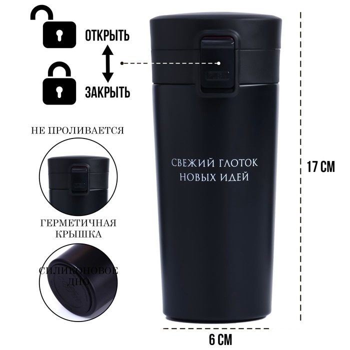 Термокружка для кофе и чая "Мастер К" идеальна для офиса, автомобиля, длительных прогулок и детям в школу. Благодаря специальному покрытию надежно лежит в руке.
