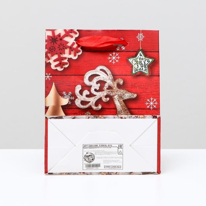 Пакет ламинированный "Новогодний олень", 11,5 x 14,5 x 6 см