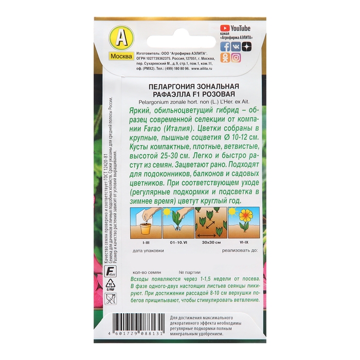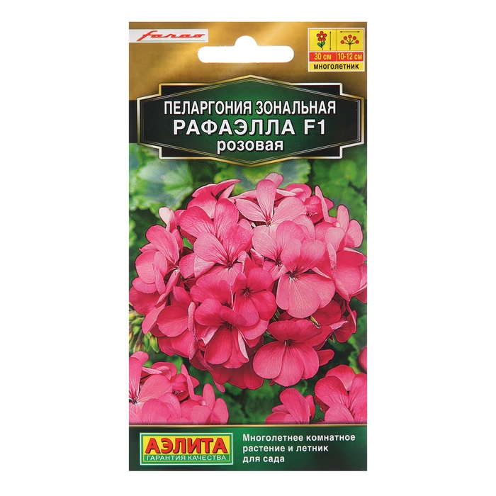 Новые гибриды пеларгонии Рафаэлла F1 розовая – образец современной селекции. Их красивые, компактные кусты высотой 30 см хорошо разветвлены, выглядят сильными, густыми, плотными. Венчающие куст пышные шары соцветий 12 см диаметром имеют богатую палитру цветов. Гибриды легко и быстро растут из семян – всходы появляются через 1-1,5 недели, зацветают на ранней стадии развития. Применение универсальное:горшечное содержание в комнатах, на солнечных балконах и в качестве летника в садовых цветниках. Растения устойчивы к жаре, хорошо переносят кратковременные понижения температуры. При соответствующем уходе (регулярные подкормки и подсветка в зимнее время) цветут круглый год.