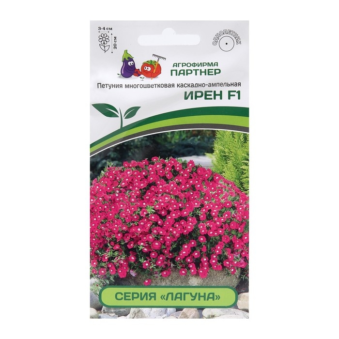 «ЛАГУНА» –новый тип мелкоцветковой петунии на цветочном рынке совершенно в новом качестве! Габитус растения и диаметр цветка напоминает калибрахоа: тонкие длинные ниспадающие побеги, достигающие в длину 1 метра, стремятся вверх и в стороны и просто усыпаны цветками. Благодаря этому, середина куста никогда не бывает пустой, что часто случается с ампельными петуниями. Цветение непрерывное и чрезвычайно обильное с весны до поздней осени, благодаря гену мужской стерильности. «ЛАГУНА» характеризуется повышенной устойчивостью как к повышенным, так и пониженным температурам. С помощью данной серии Вы воплотите в жизнь множество оформительских идей, создадите яркие цветовые пятна в солнечных палисадниках, каменистых садиках, клумбах, придадите динамичности композиции в подвесном декоре, корзинах.
