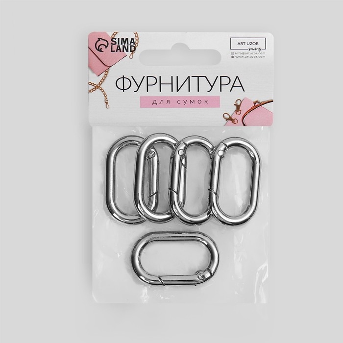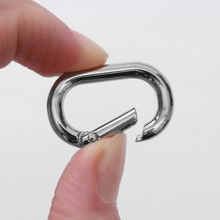 Овал-карабин, 31 × 20 мм / 22 × 12 мм, толщина - 4 мм, 5 шт, цвет серебряный