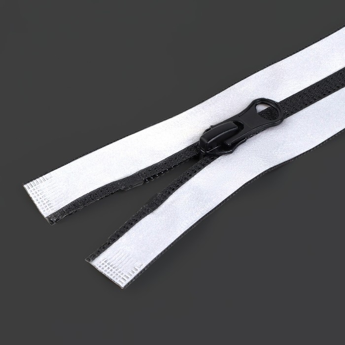 Молния «Спираль», №5, разъёмная, водонепроницаемая, со светоотражающей лентой, замок автомат, 100 см, чёрная, серая