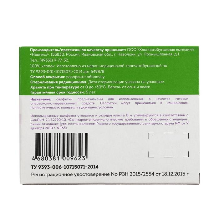 Салфетки марлевые медицинские стерильные предназначены для использования в качестве готовых операционно-перевязочных средств, наложения компрессов, также возможно использование в хозяйственных целях.