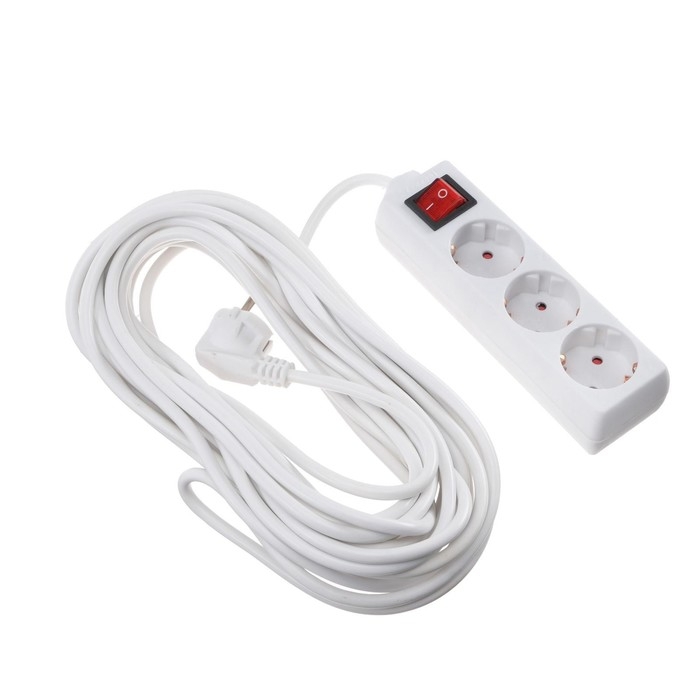 Удлинитель Luazon Lighting, 3 розетки, 10 м, 6 А, 1300 Вт, 3х0.75 мм2, с з/к, с выкл., Б