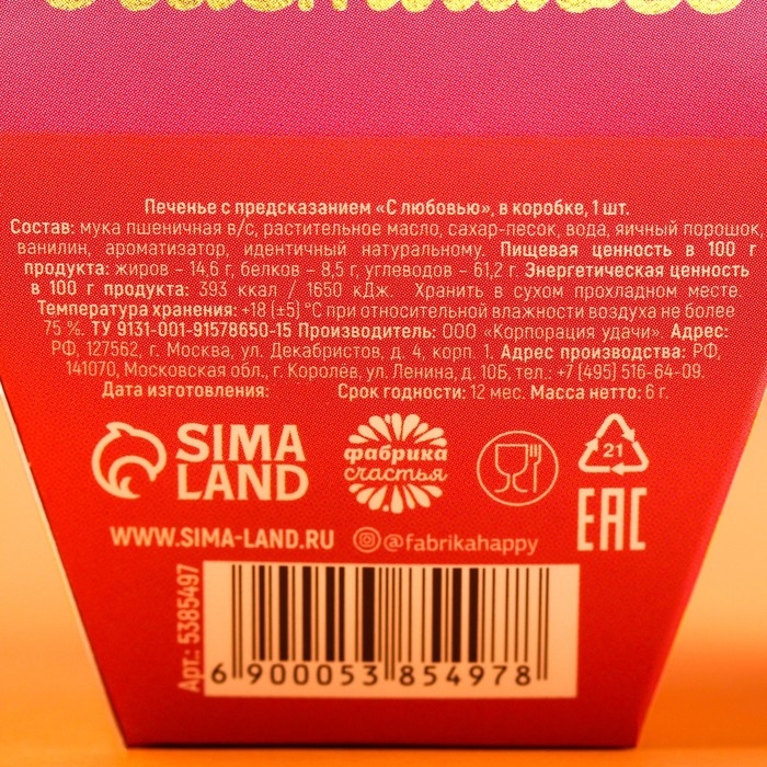 Печенье с предсказанием «8 марта», 1 шт. х 6 г.