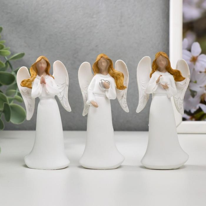 Сувенир полистоун "Ангел с серебристыми узорами на крыльях" МИКС 8,7х4,2х2,8 см