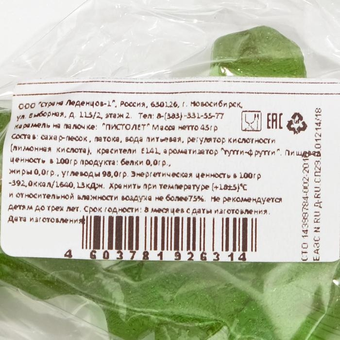 Карамель на палочке "Пистолет" зеленый , 45г