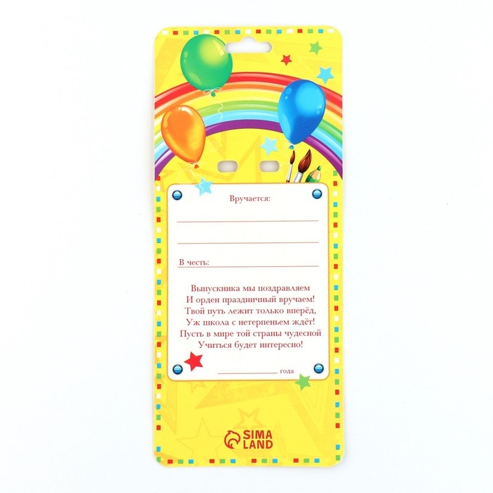 Значок - орден на Выпускной «Выпускник детского сада на книге», d = 6,7 см