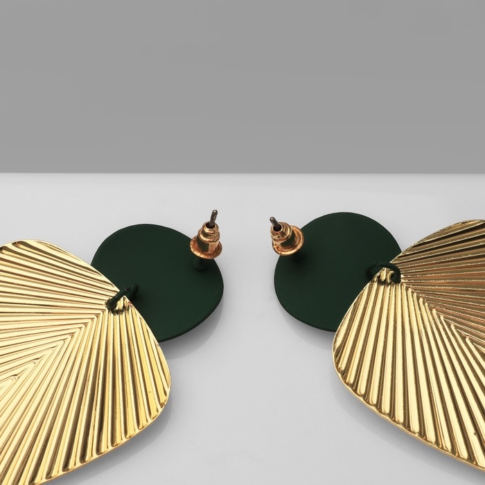 Серьги металл «Геометрия» линии, цвет золотой в тёмно-зелёном