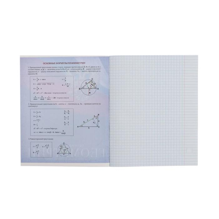 Тетрадь предметная Calligrata "Доска", 48 листов в клетку Геометрия, со справочным материалом, обложка мелованный картон, блок офсет