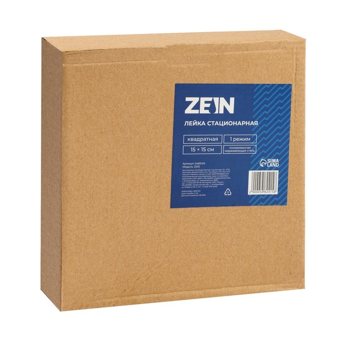 Лейка стационарная ZEIN Z015, квадратная, 15 х 15 см, 1 режим, полированная нерж. сталь
