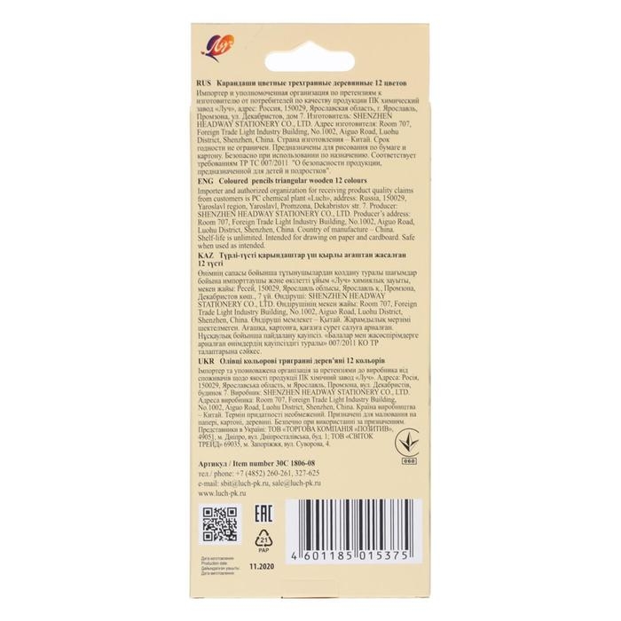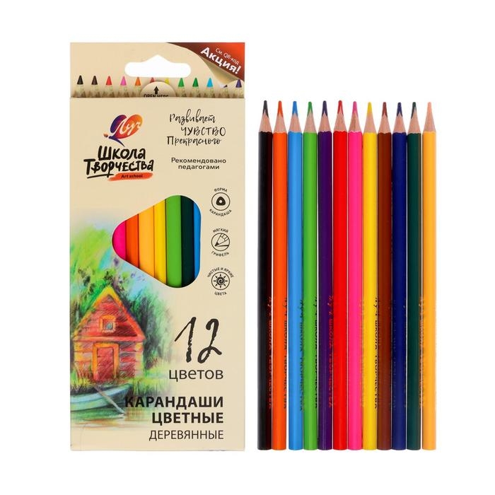 Цветные карандаши 12 цветов "Школа Творчества", трёхгранные