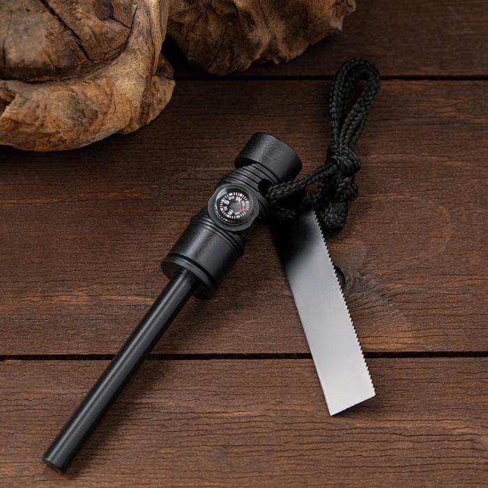 Огниво туристическое "Искра" 12х2см, брелок, с компасом
