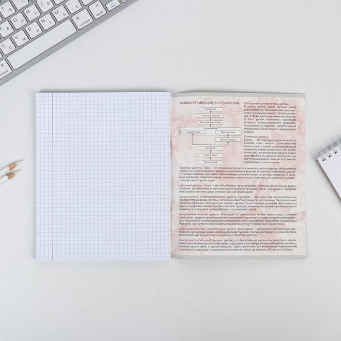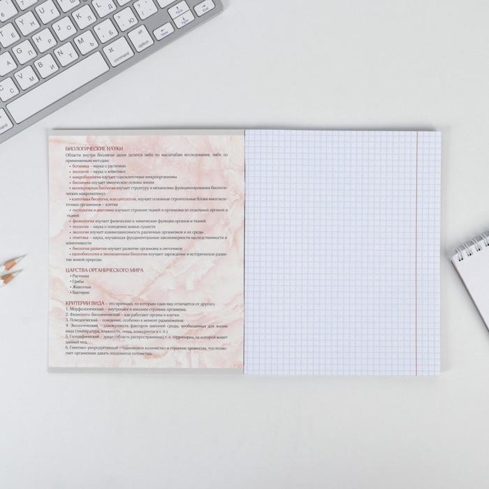 Тетрадь предметная 48 листов, А5, МРАМОР, со справ. мат. «1 сентября: Биология», обложка мелованный картон 230 гр внутренний блок в клетку белизна 96%