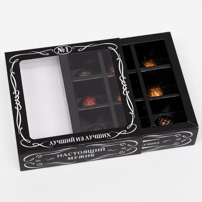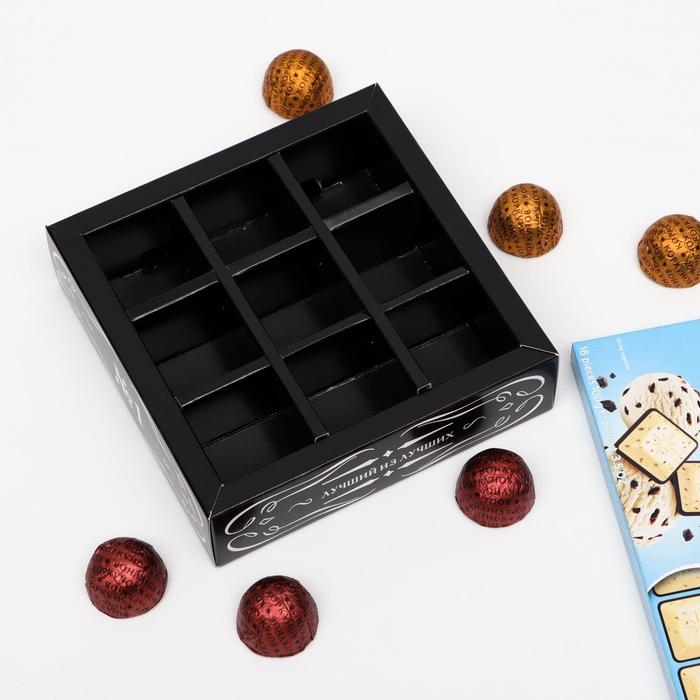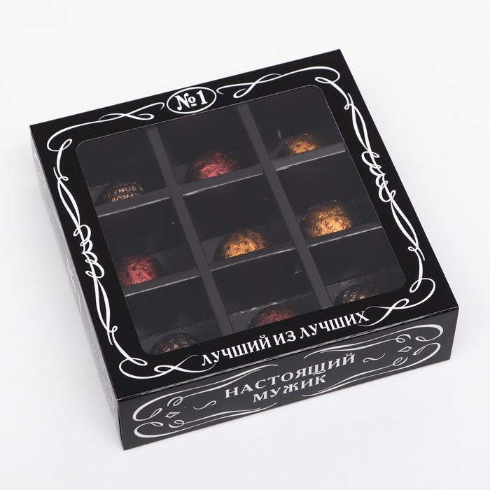 Коробка для конфет 9 шт, "Мужская", черная, 13,7 х 13,7 х 3,5 см,