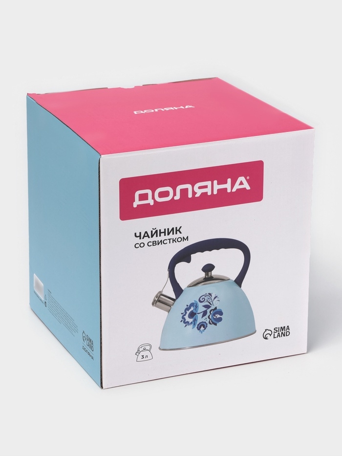 Чайник со свистком из нержавеющей стали Доляна «Свиристель», 3 л, цвет голубой