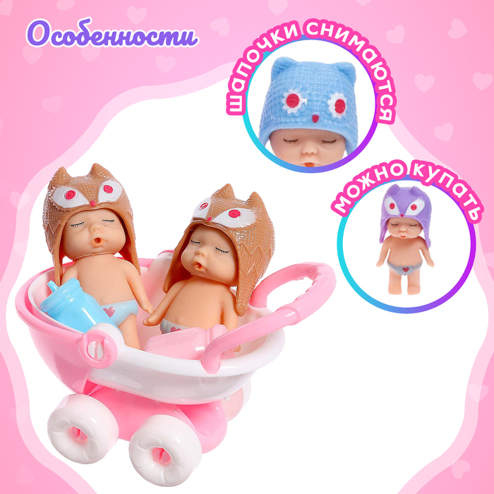 Набор пупсов «Малышки» 2 шт., с коляской, с аксессуарами, МИКС