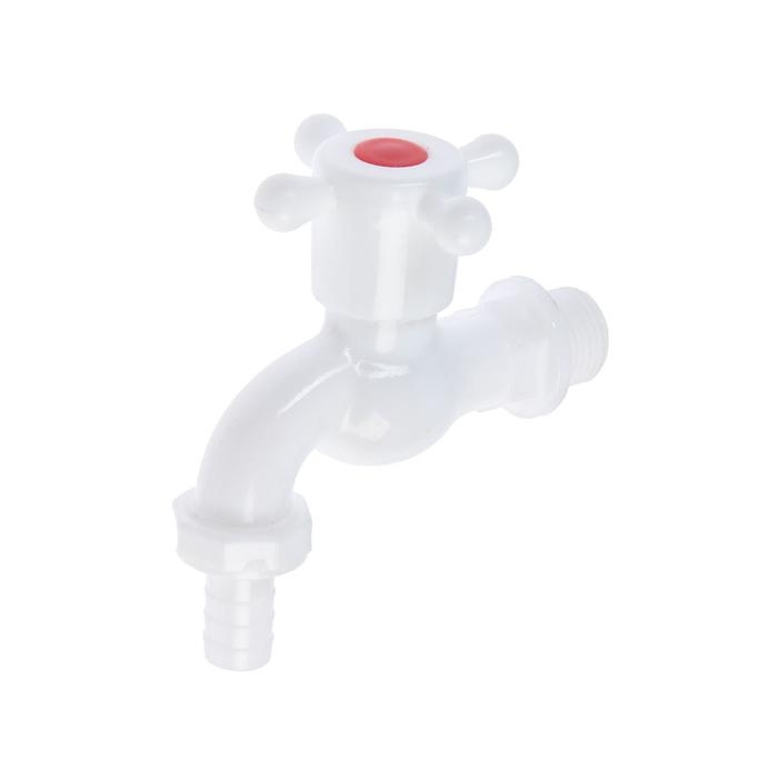 Кран водоразборный со штуцером ZEIN Z2190, 1/2",с крестовой ручкой,PP,шаровой механизм,белый