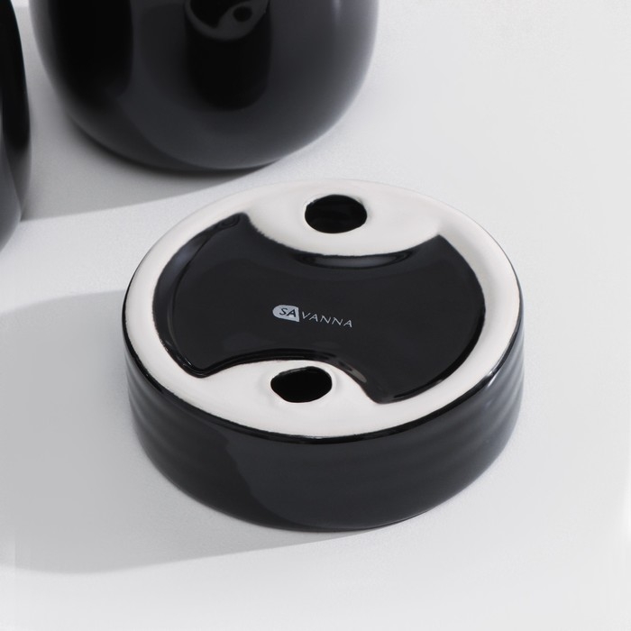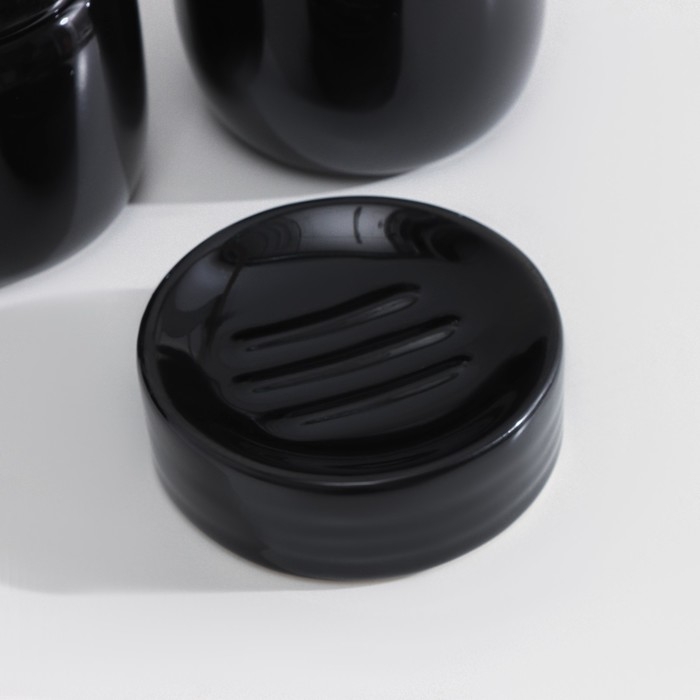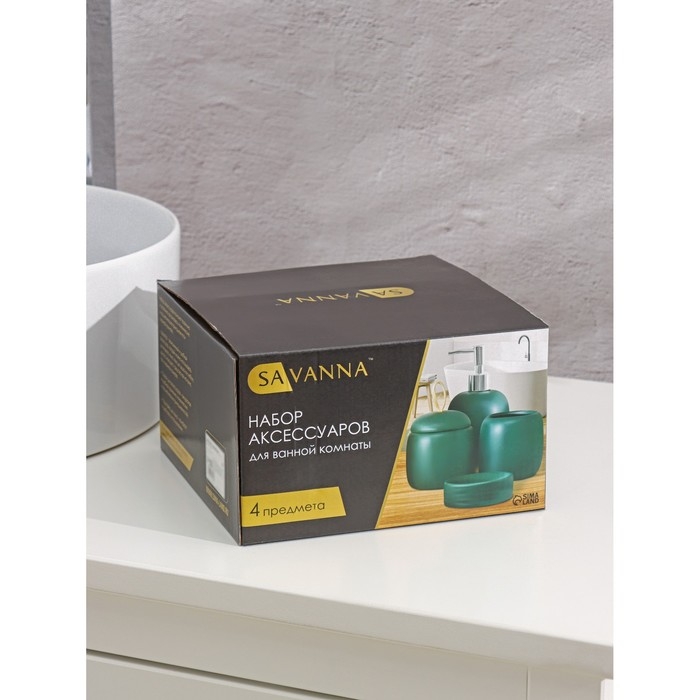 Набор аксессуаров для ванной комнаты SAVANNA Monro, 4 предмета (мыльница, дозатор для мыла 450 мл, стакан, баночка), цвет чёрный