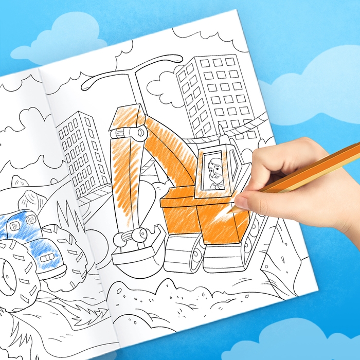 - На каждой страничке есть свой сюжет: можно раскрашивать, придумывать истории и знакомиться с разными видами транспорта.
