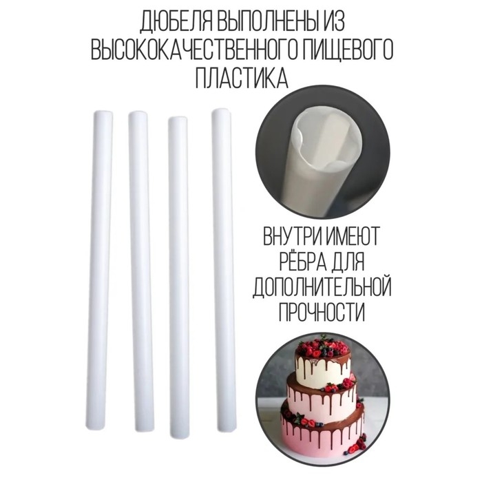 Палочки-дюбели – универсальный инструмент кондитера. Они изготовлены из пластика, и идеально подходят для того, чтобы помочь вам в любимом творчестве.
