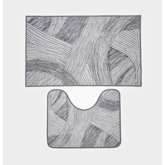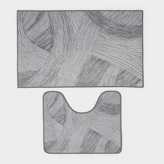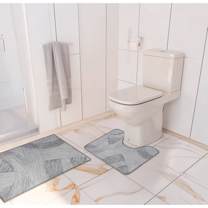 Коврики для ванной и туалета Доляна «Мрамор», 2 шт: 79×50 см, 50×39 см, цвет серый