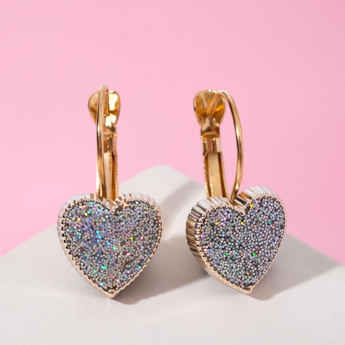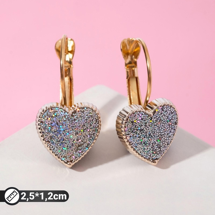 Серьги ассорти «Сердца» блёстки, цвет серебро в золоте