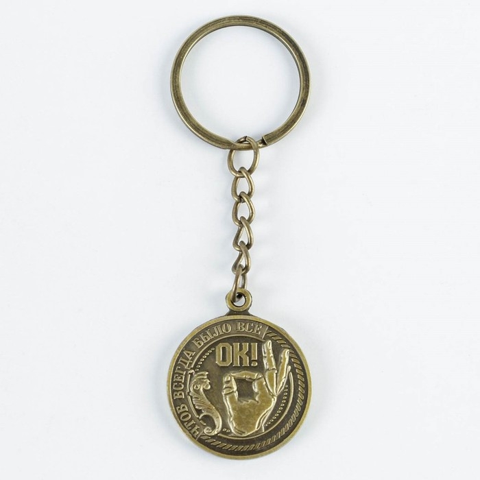 Брелок для ключей , металлический, оберег «Чтоб всегда было все ок» латунь, 3 х 3,5 х 2,5 см