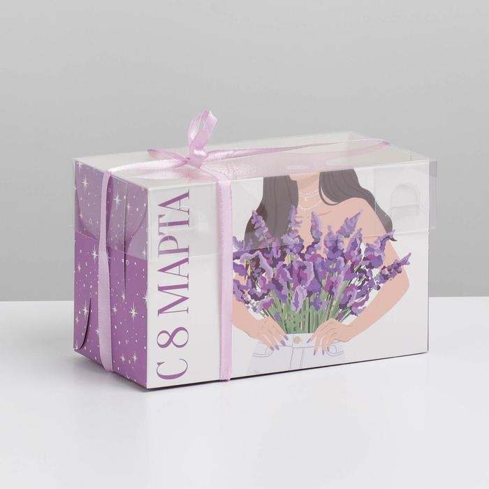 Коробка для капкейка «8 марта», 16 х 8 х 7.5 см
