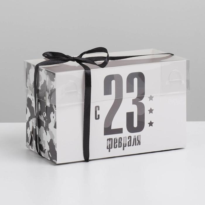 Коробка для капкейка, кондитерская упаковка, 2 ячейки, «23 февраля», 16 х 8 х 10 см