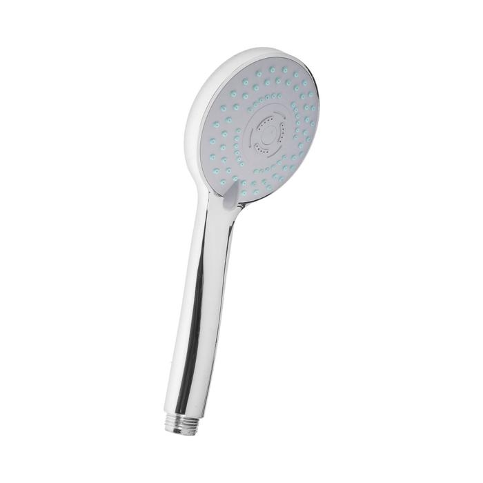 Лейка имеет круглую форму и выполнена из ABS-пластика. Встроенный в душевую лейку переключатель потока воды дает возможность изменять мощность струи и оптимизировать расход воды. Настенный кронштейн для лейки — неповоротный. Шланг изготовлен из нержавеющей стали.